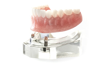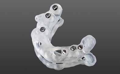 インプラントを数本埋入し、その上に入れ歯を固定する治療法です。入れ歯がずれたり外れたりする不快感を軽減し、しっかりと噛める安定感を得られます。従来の総入れ歯に比べて装着感が良く、見た目も自然。取り外し可能なため清掃もしやすく、口腔内を清潔に保ちやすいのが特長です。