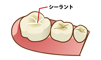 奥歯の噛み合わせ部分には深い溝があり、歯みがきだけでは汚れが残りやすくなります。シーラントは、その溝をあらかじめ樹脂で埋めてむし歯を防ぐ方法です。歯を削らずに行える処置で、特にむし歯になりやすい6歳臼歯などに有効です。予防の一環として早めのケアをおすすめしています。