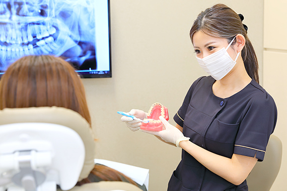 一人ひとりの歯並びやみがき癖に合わせた、効果的な歯みがき方法をお伝えします。実際にみがき方を確認しながら、みがき残しが出やすい箇所や正しい力加減を丁寧にアドバイス。毎日のケアの質を高め、むし歯や歯周病を防ぐことにつなげます。